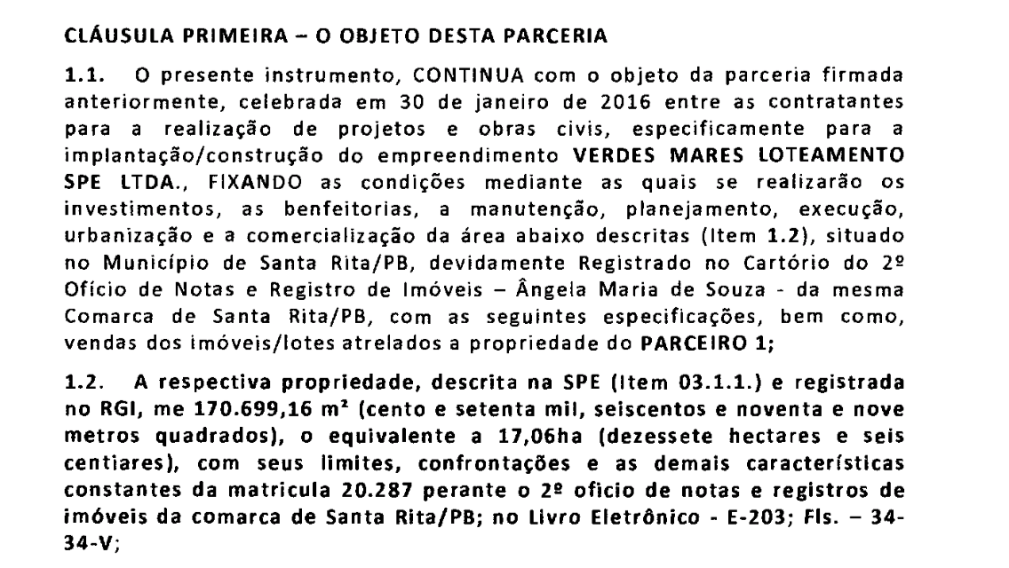 Verdes Mares - RGI nº 20.287; LE 203; fls 34 e 34V - 2º Cartório de Santa Rita/PB